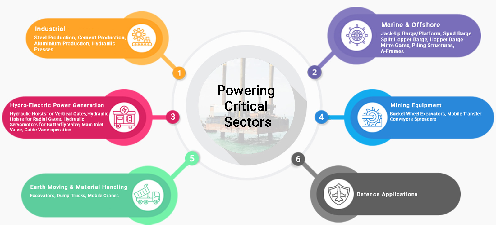 We have designed, manufactured and supplied Marine Hydraulic Systems to various Shipyards and Infrastructure/Offshore Companies under survey of Classification Societies like Bureau Veritas, Indian Register of Shipping, RINA, LRS, etc. Some of the applications for which we have supplied such systems are for Jack-Up Barges, Hopper Barges, Split Hopper Barges, Spud Barges, Steering Gears, A-Frame Structures, Skylight Gear, Underwater Pipe Laying Equipment, Winches and Capstans, Pile Guide Frames, etc. We have in fact specialised in the design and manufacture of Hydraulic Systems for Jack-Up Barges and Split Hopper Barges and have supplied and installed hydraulic systems for several Jack-Up Barges, with lifting capacities of up to 4000 tons and Split Hopper Barges of up to 1200 cubic meter hopper capacity. These hydraulic cylinders are specially designed for operation in harsh marine environments.